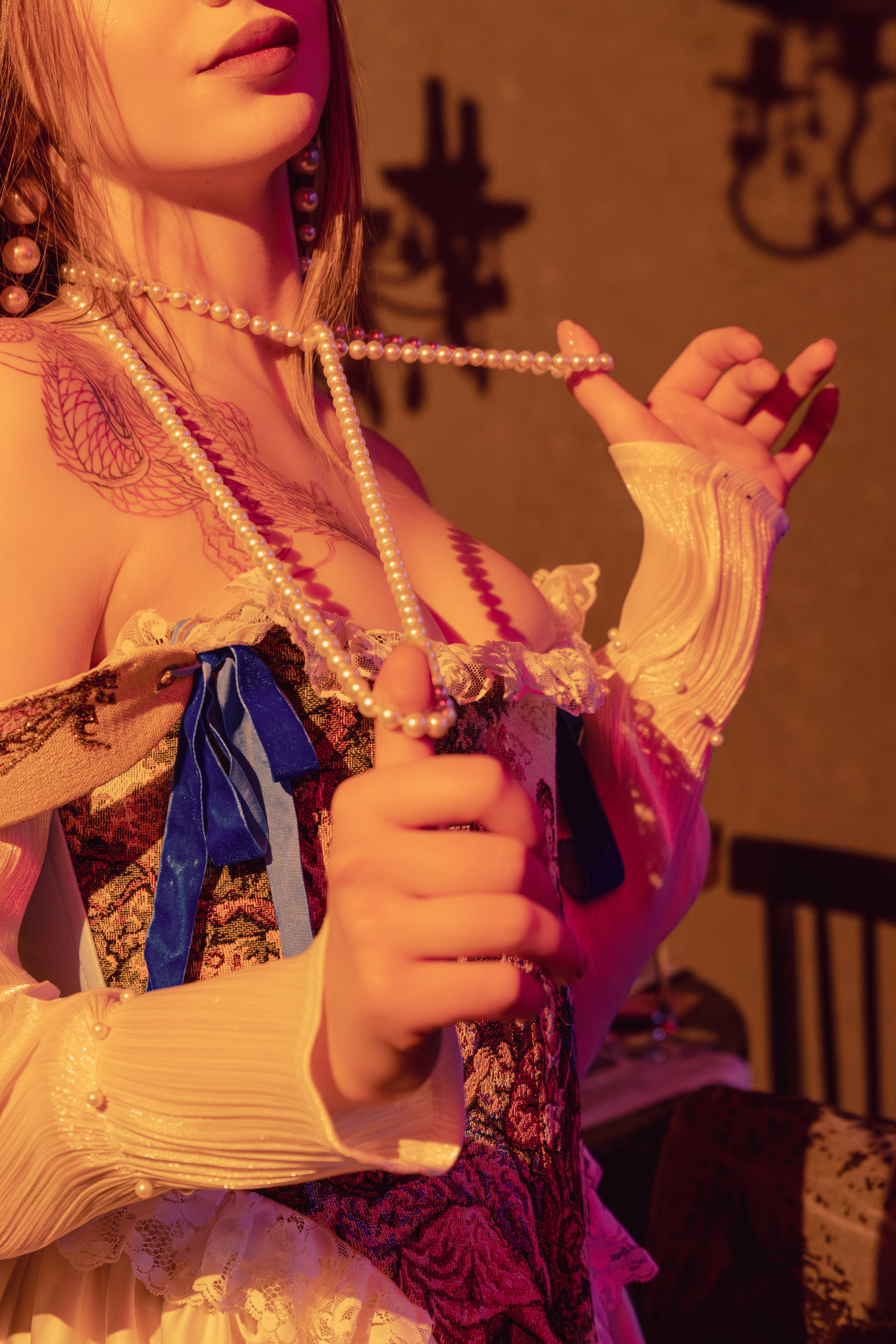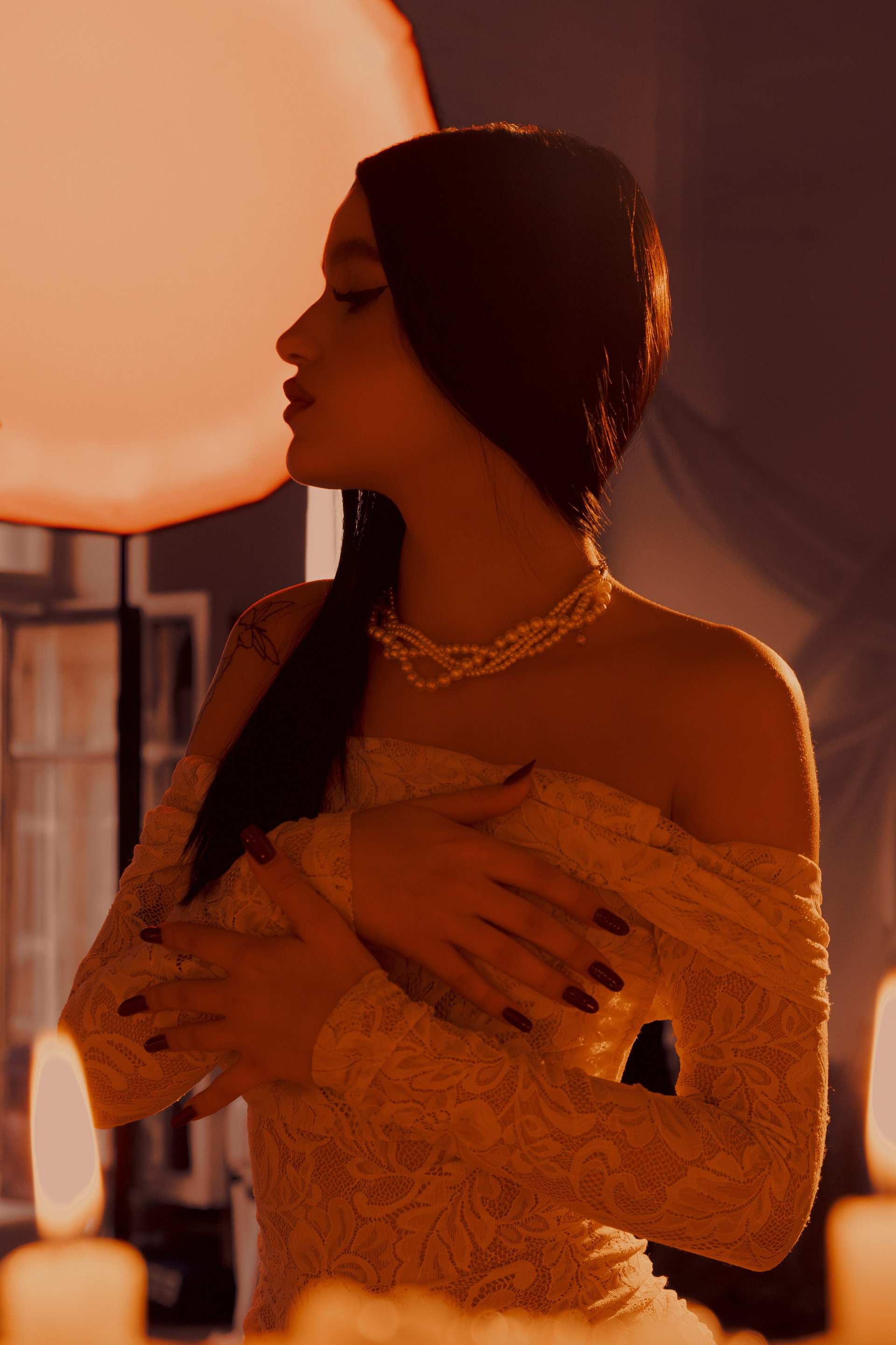 Я имитировал свет из окна. Точнее я дополнил и так естественный свет нашим цветным источником — красным мягким светом.