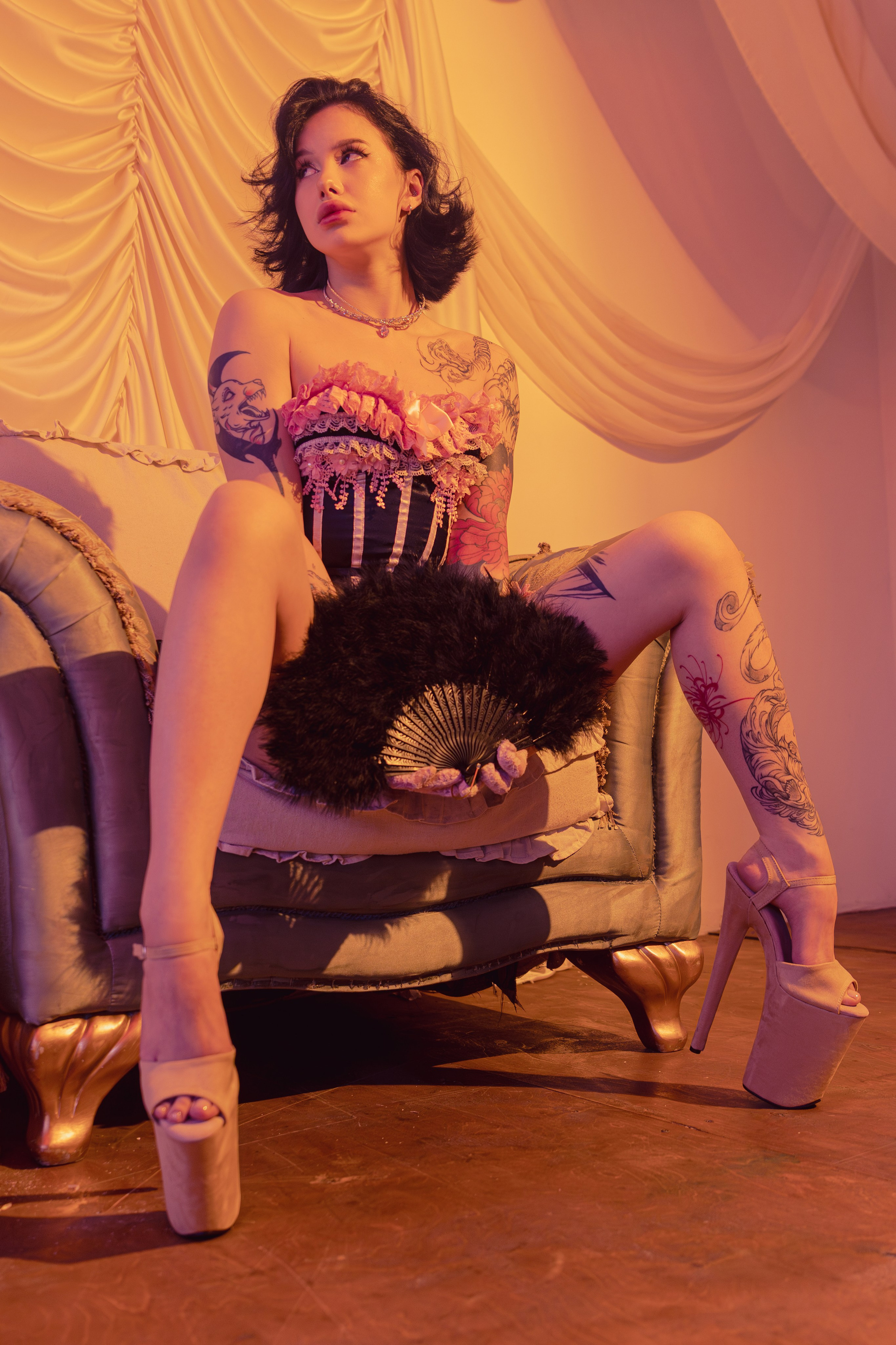 Я всегда делаю кадры с разных сторон. Хорошо, когда на студии есть лестницы, стремянки и тому подобное. Можно забраться наверх, чтобы сделать не только портрет, но и в полный рост.