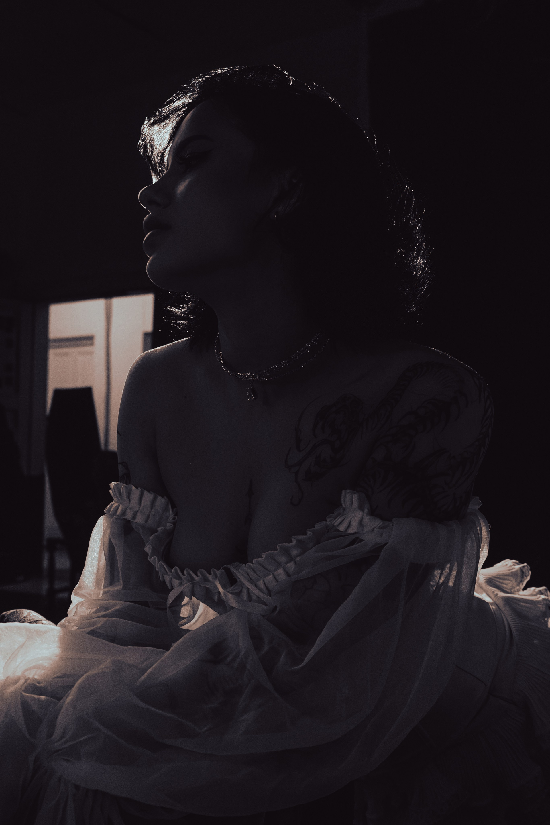 Студия делиться на 2 зоны — светлая и тёмная. На тёмной локации у нас был другой образ и световые схемы я тоже поменял, чтобы передать новый винтажный антураж.